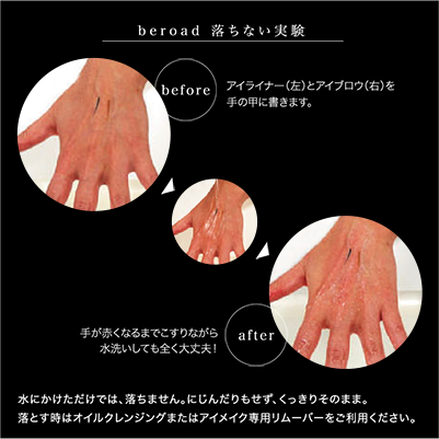 マスカラにも使用している2種類の固め被膜剤と柔らか被膜剤を配合。お肌に密着する膜を張り、ライナーもブロウも落ちにくさMax!。