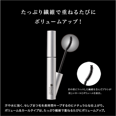 驚きの曲線美を持続するマスカラ。目の形にフィットした繊維を含んだブラシが美しいカールとボリュームを演出。