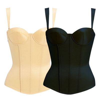 バスト・ウエスト、下腹の3か所をキュッと美しく補整します。バストは3枚接ぎのカップが斜め27°のビューティフルラインをつくります。
